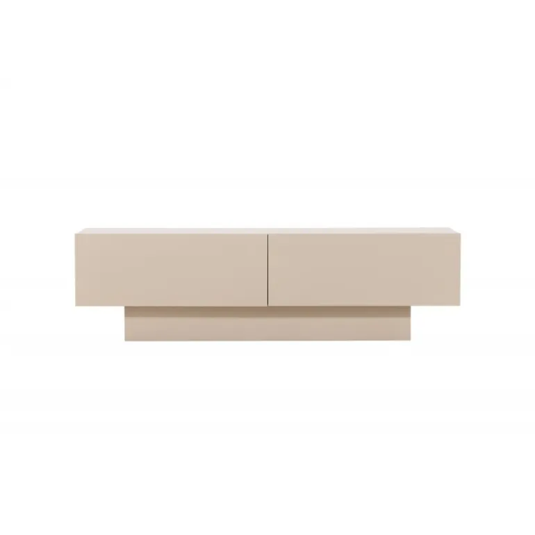 Skab et hyggeligt hjørne ved sofagruppen og dekorer med en elegant TV-bænk i beige/brune nuancer fra Cuenca-serien! Fremstillet med omhyggeligt design i en varm lys brun melaminfarve, tilføjer denne TV-bænk et moderne touch til dit interiør samtidig med, at den giver en smart opbevaringsløsning ved siden af sofaen. Nyd godt af den praktiske skabsdør, en skjult opbevaringsmulighed hvor du nemt kan organisere dine ejendele og TV-tilbehør. Den skjulte glashylde understøtter, hvad du ønsker at opbevare og skaber også plads til mere med sit smarte design. Dernæst kan du pynte topfladen for et hyggeligere og mere moderne udseende. Pynt den med lysestager, bøger eller en lille plante for at tilføje liv og bevægelse til fokuspunktet. Her er din mulighed for at skabe en atmosfære, der passer præcis til din stil, hvilket får dig til at føle dig omgivet af komfort og elegance. Den robuste, centralt placerede base tilbyder ikke kun stabil støtte til din bænk, men hæver også rummet og gør støvsugning til en let opgave. Elegant, moderne og tidløs – Cuenca TV-bænk sætter en ny standard for både opbevaring og design!