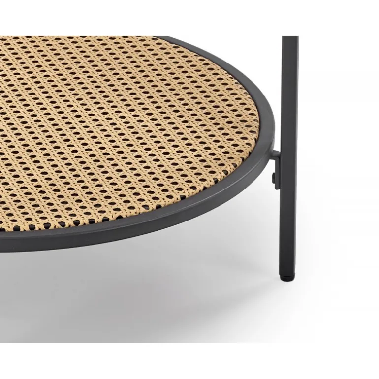 - Moderne design: Kombinerer glas, syntetisk rattan og pulverlakeret stål for et stilfuldt look.