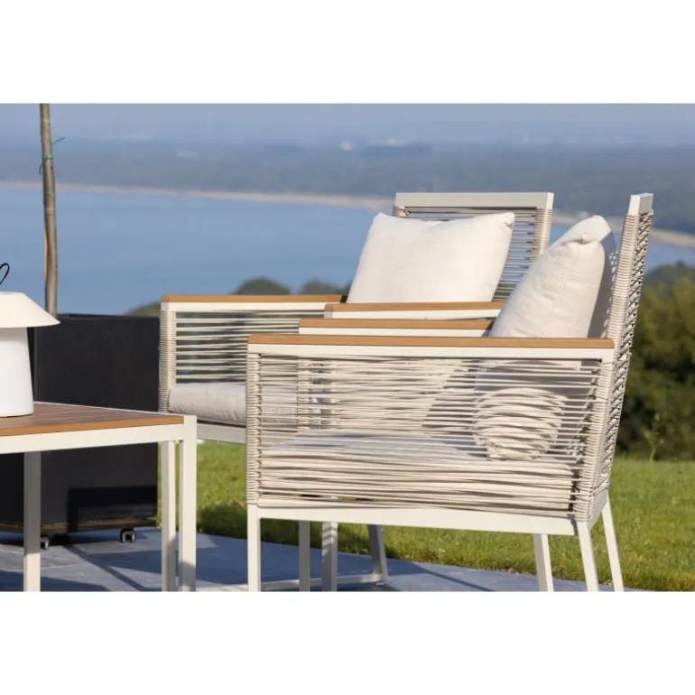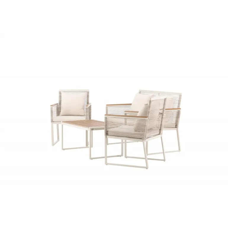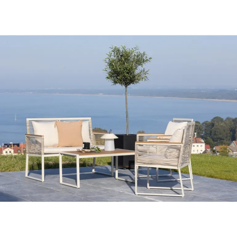 Oplev elegance og komfort med Dallas samtalesæt – den perfekte tilføjelse til din have. Dallas samtalesæt tilbyder et tidløst design med et moderne touch og er fremstillet med omhu og udvalgte materialer for at give dig en behagelig og afslappende udendørsoplevelse. Sættet inkluderer en rummelig 2 personers sofa, to komfortable stole og et praktisk bord. Du får også syv bløde puder, der tilføjer ekstra komfort og et strejf af luksus til dit siddeområde. Med Dallas samtalesæt kan du invitere dine kære til afslappende stunder og udendørs underholdning. Dallas samtalesæt har en ren hvid farve og er lavet af stål, hvilket sikrer holdbarhed og modstandsdygtighed over for vejr og vind. Bordet er udstyret med en smuk træbordplade, der giver en naturlig følelse. Skab en afslappet og indbydende atmosfære på din terrasse, altan eller i haven med Dallas samtalesæt. Uanset om du nyder din morgenkaffe ved solopgang eller er vært for aftenarrangementer, vil Dallas være din pålidelige og stilfulde følgesvend.