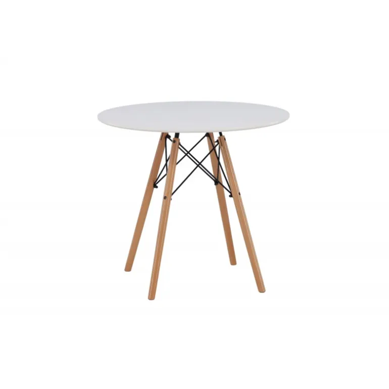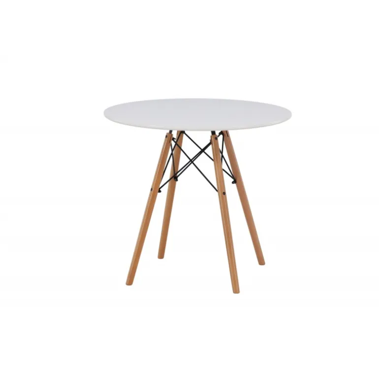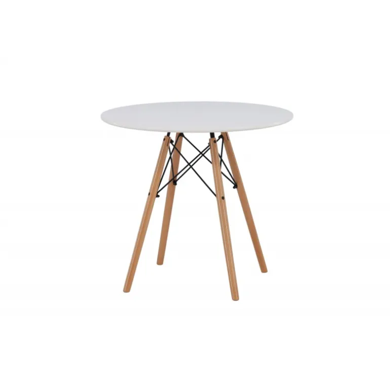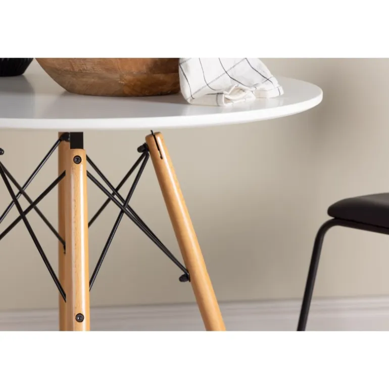 Et rundt spisebord er perfekt til at skabe sociale og indbydende øjeblikke ved alle måltider – her ender ingen på kanten! Spisebordet Danburi har et klassisk og tidløst design med en rund bordplade i hvid MDF og let udstillede ben i bøgetræ med dekorative detaljer i sort stål. Match det med et par komfortable spisebordsstole, og du vil sidde her længe med dine kære!