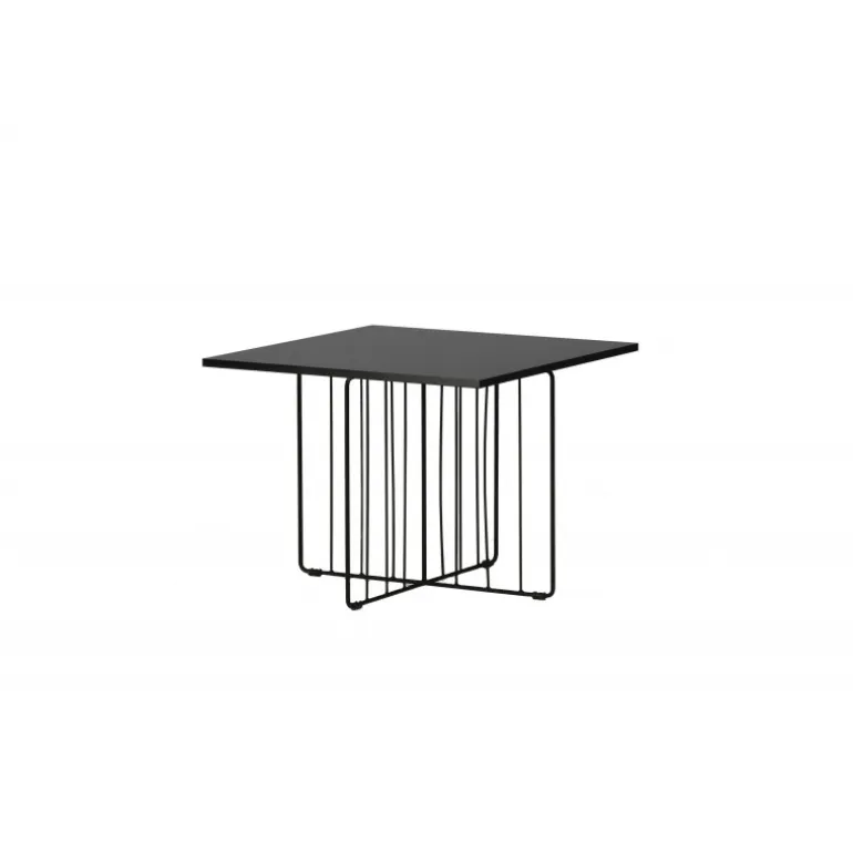 - Materiale: Firkantet bordplade i sort MDF og dekorativ gitterformation i sort stål.