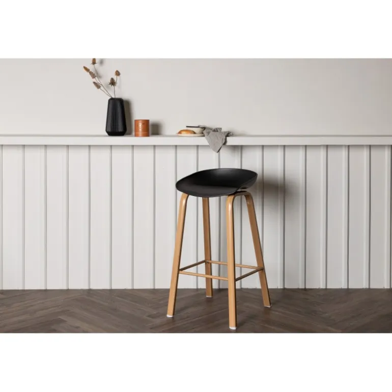 Den klassiske barstol, der aldrig går af mode! Decatur barstolen er en del af Venture Home kollektionen og har et stilfuldt design med lige ben i egfarvet træ og et enkelt sæde i SortPP. Barstolen har også en integreret fodstøtte for ekstra komfort. Placer den ved køkkenbaren for at byde ekstra selskab velkommen eller rundt om et højere spisebord – lige så praktisk som anvendelig! Denne barstol forlænger de delte øjeblikke i hjemmets hjerte!
