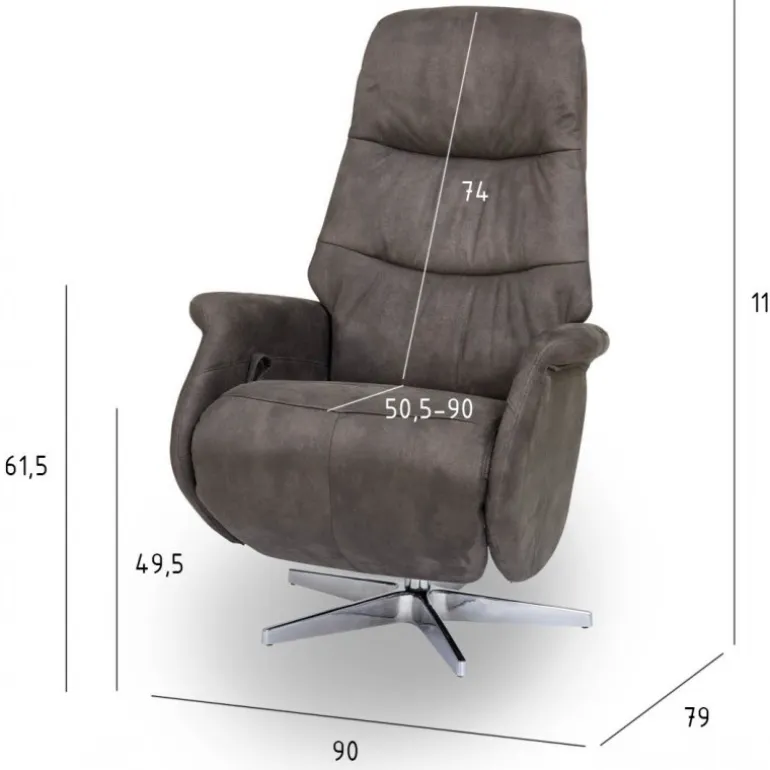 - Funktioner: Manuel recliner, justerbar ryg og fodstøtte, justerbar nakkestøtte, drejefunktion