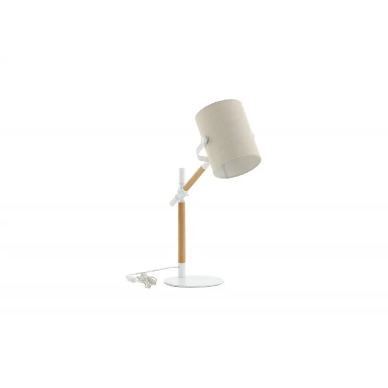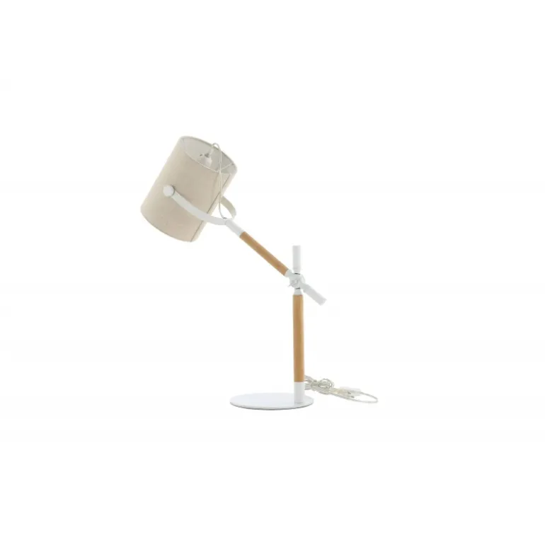 Dennis Lampe er en smuk og moderne bordlampe, der passer perfekt på sofabordet eller natbordet. Det glatte design gør det nemt at vinkle lampen og tilpasse den til dine specifikke behov! Lampeskærmen i polyesterlinned giver rummet et behageligt lys, og kombinationen af det hvide og trædetaljerne gør lampen både stilfuld og tidløs.