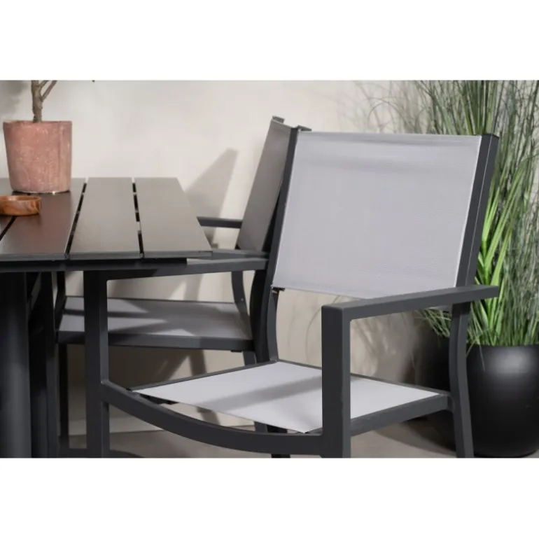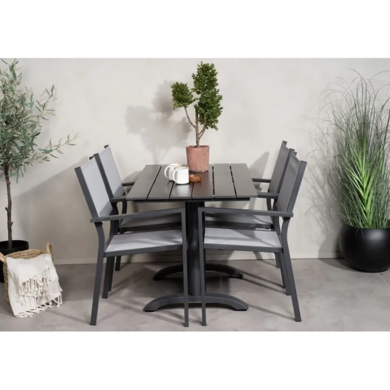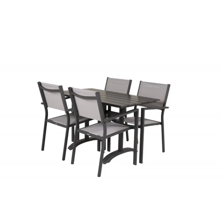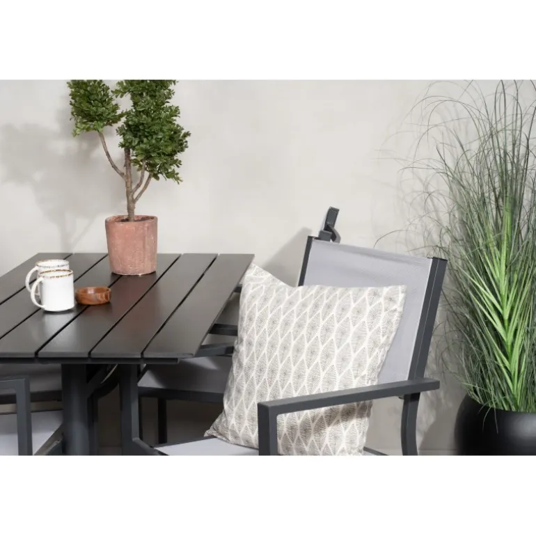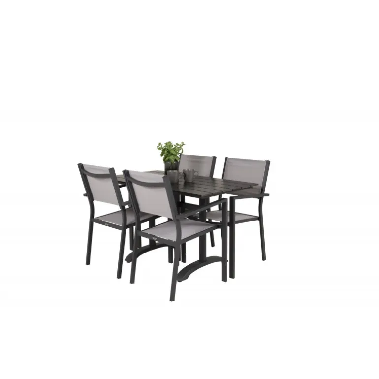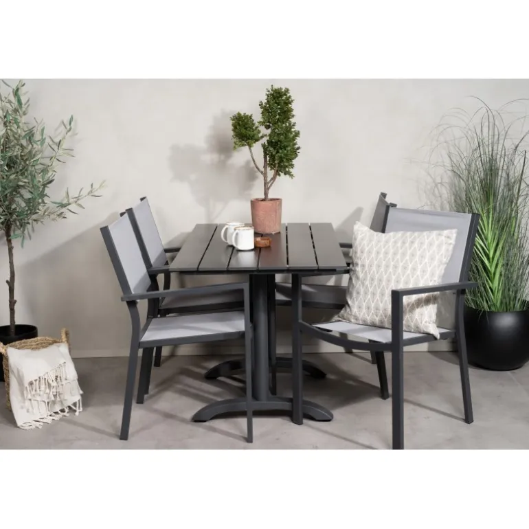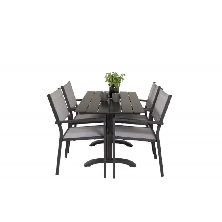 Klassisk Loungesæt – Havemøbelsæt, der passer perfekt til altanen eller udendørsområdet! Spisebordet Denver sammen med stolene i Copacabana-serien er ideelt for dem, der ønsker at skabe en hyggelig og moderne atmosfære og nyde sommeren både pænt og komfortabelt. Aluminium og aintwood gør dette sæt både holdbart og stilfuldt.