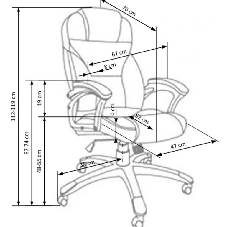 Oplev komfort og stil med DESMOND stolen i Sort. Denne elegante kontorstol er perfekt til både hjemmekontoret og arbejdspladsen. Udstyret med en multiblock mekanisme og gummibelagte hjul, tilbyder DESMOND stolen optimal fleksibilitet og bevægelsesfrihed. Den er fremstillet af økologisk læder, som giver et luksuriøst udseende og følelse. Med dimensionerne 67/70/112÷119 cm passer denne stol perfekt ind i enhver kontorindretning.