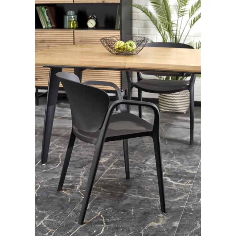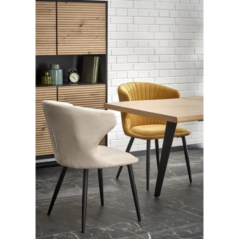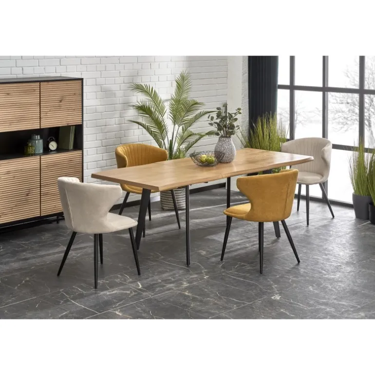 DICKSON 2 Spisebord med udtræk kombinerer stil og funktionalitet for at opfylde dine behov. Med dimensionerne 150-210/90/75 cm kan det nemt forlænges for at rumme flere gæster. Bordpladen i naturlig eg og Sorte ben skaber et elegant udtryk, der passer til enhver indretning. Materialet består af MDF med naturlig finer, hvilket sikrer holdbarhed og langvarig brug. Husk at tørre bordpladen straks efter spild af væsker for at undgå vandabsorption.