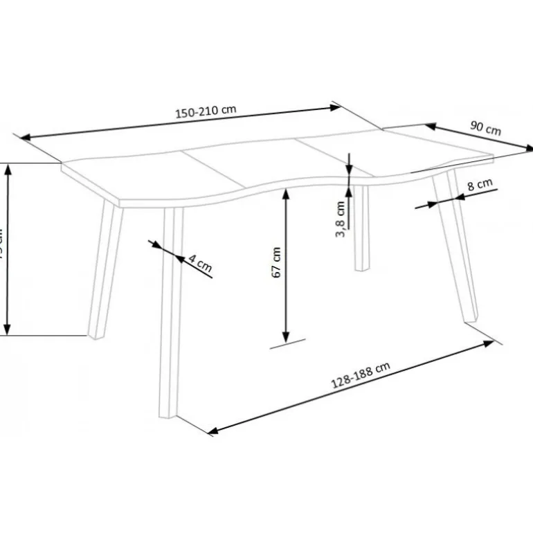 - Udtræksfunktion: Bordet kan forlænges fra 150 cm til 210 cm, ideelt til større sammenkomster.