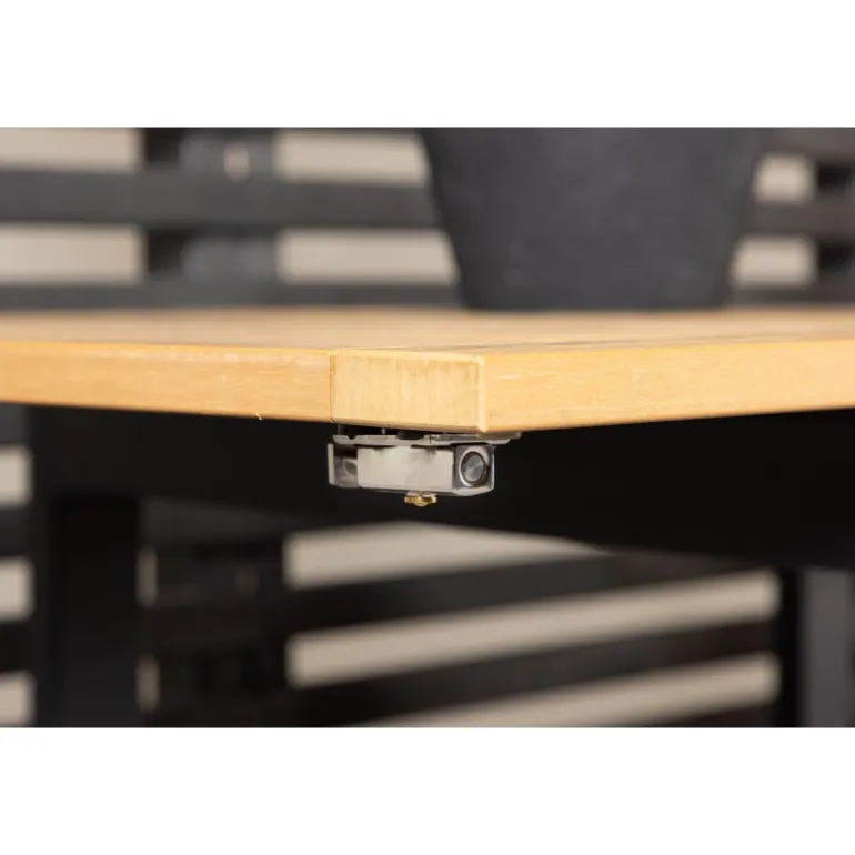 - Materialer af høj kvalitet: Bordplade i brun aintwood og ben i sort aluminium.