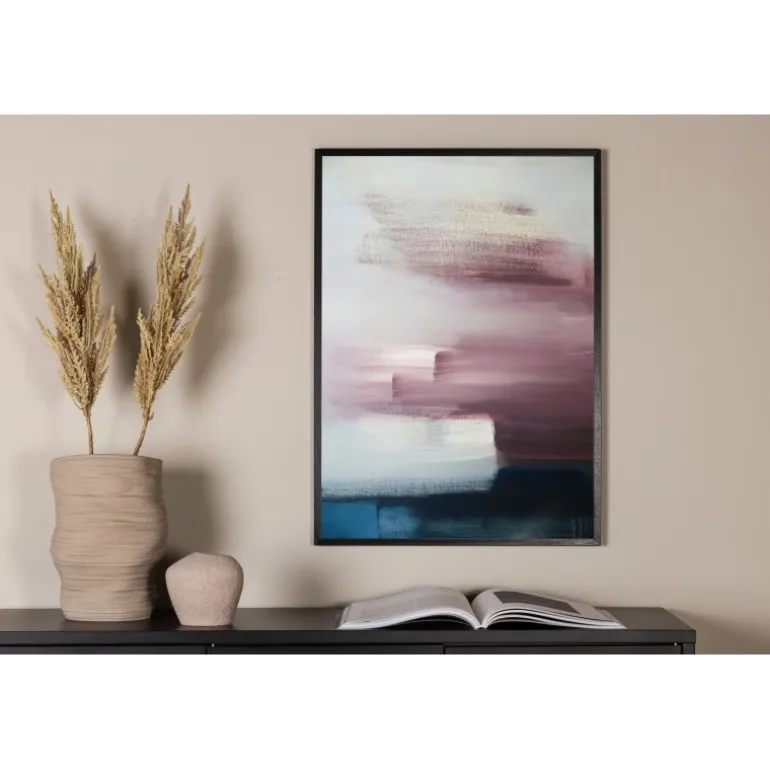 Dihin Plakat er en smuk vægdekoration med dybe varme farver malet i akryl på lærred. De herlige farver af havblå, lavendellilla og beige fremhæver andre farver i hjemmet og smelter sammen med interiøret. Med dimensionerne 50×70 cm passer denne plakat perfekt til enhver væg i dit hjem.