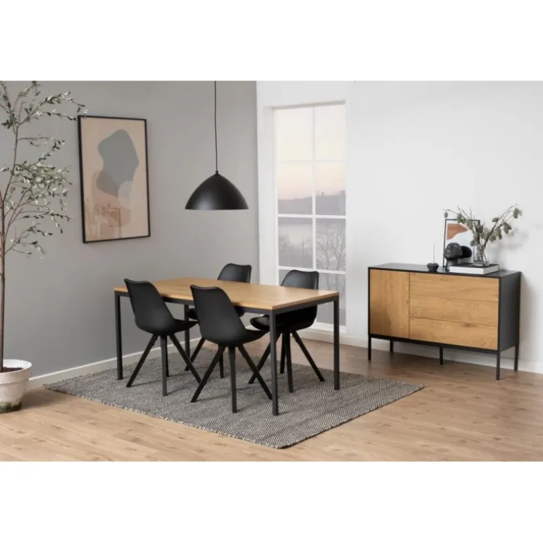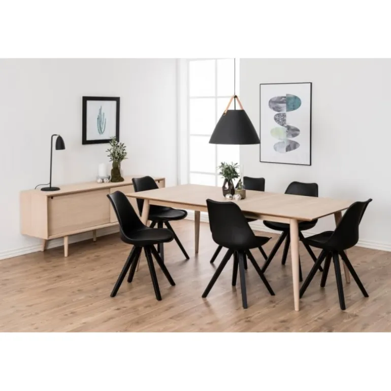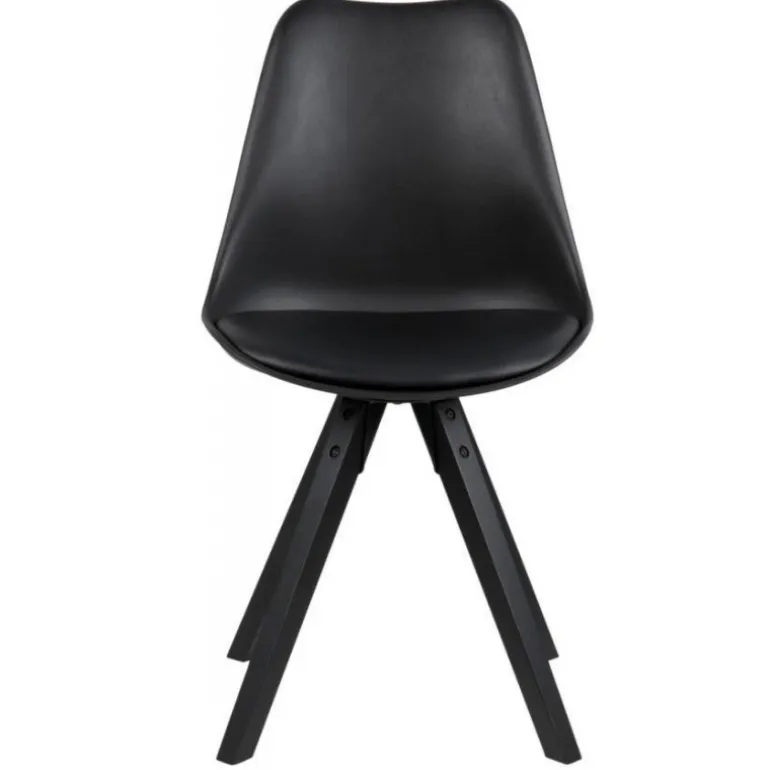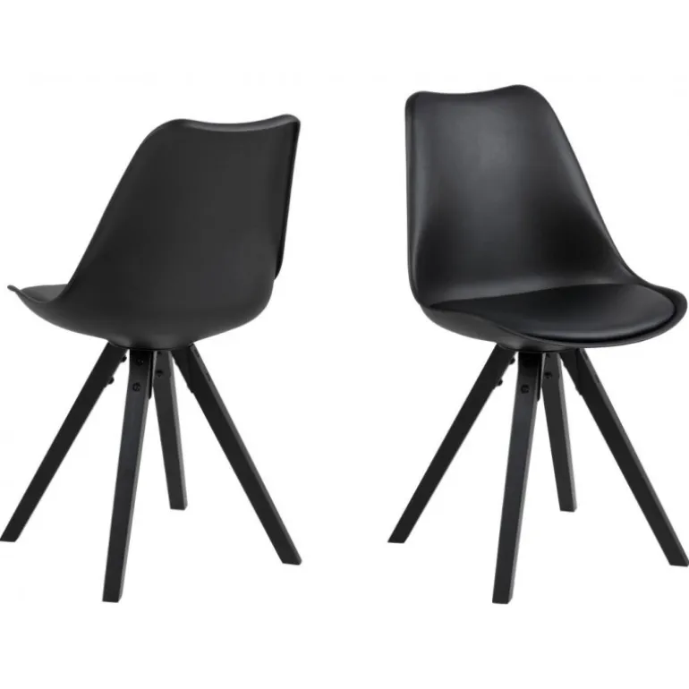 Dima spisebordsstol plastik sort, hynde sort PU, centerben gummitræ, sortmalet, pakning 2 stk