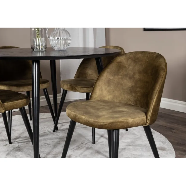 - Elegant design: Kombination af Dipp spisebord og Velvet stole.