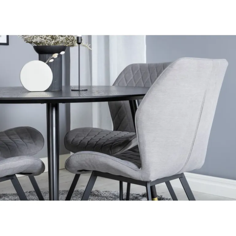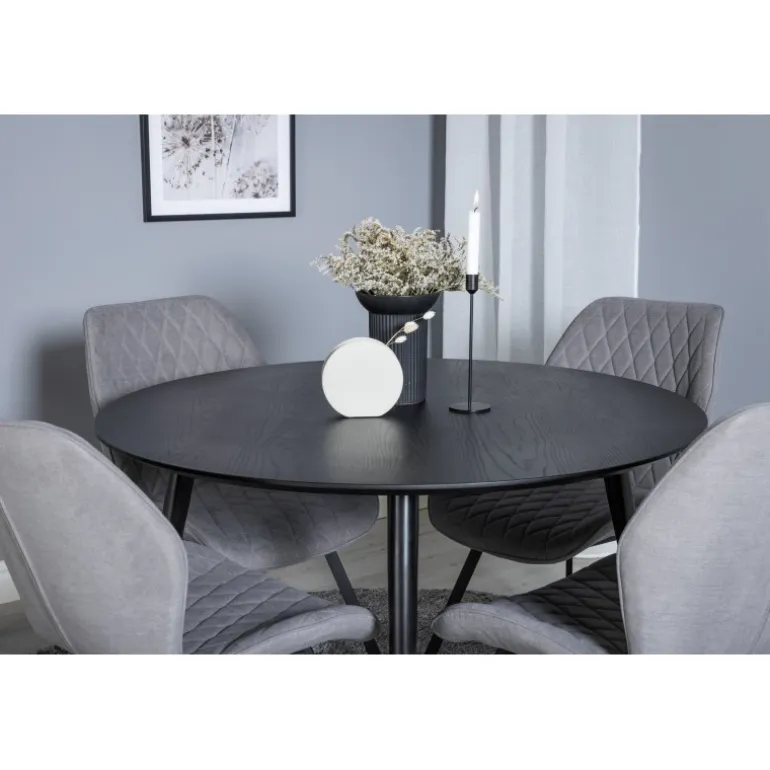 Dipp Rundt Spisebordssæt er en moderne og stilfuld løsning til dit hjem. Med spisestuens hjerte i fokus, kombinerer dette sæt elegant Dipp spisebord og Gemma stole. Det passer perfekt til dine behov og harmonerer smukt med resten af din indretning.