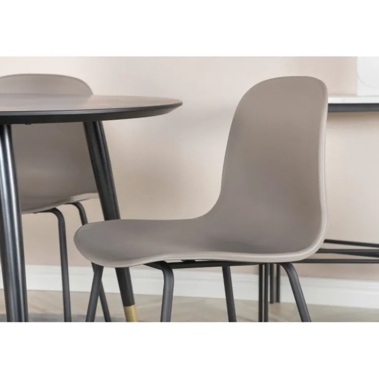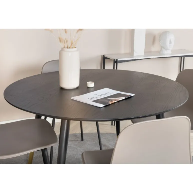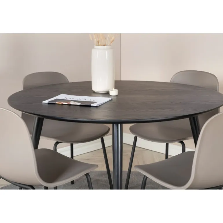 Dipp Rund Spisebordssæt er det perfekte valg for dem, der ønsker en moderne og stilren spiseoplevelse. Dette sæt inkluderer et elegant rundt spisebord fra Dipp-serien og komfortable spisestole fra Arctic-serien. Med sin sorte bordplade og stilfulde design skaber dette sæt en indbydende atmosfære til både mad og socialt samvær. Lavet af materialer som MDF, plast og stål, er dette Spisebordssæt både robust og nemt at vedligeholde. Bordet kræver samling.