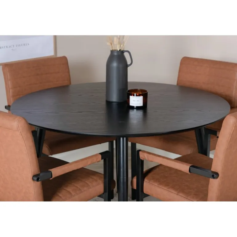 Dipp rund Spisebordssæt kombinerer moderne design og praktisk funktionalitet. Dette sæt inkluderer et elegant spis og tilhørende stole fra Art-serien, hvilket skaber et stilfuldt og socialt miljø, perfekt til god mad og hyggelige stunder. Spisebordssættet fås i både sort og brun, med holdbare materialer som bøjet træ, MDF og stål, der sikrer langvarig kvalitet. Bordet kræver samling, men resultatet er et robust og æstetisk tiltalende møbel, der passer perfekt ind i ethvert hjem.