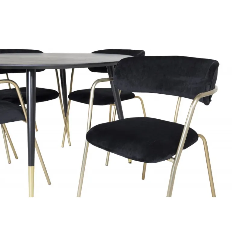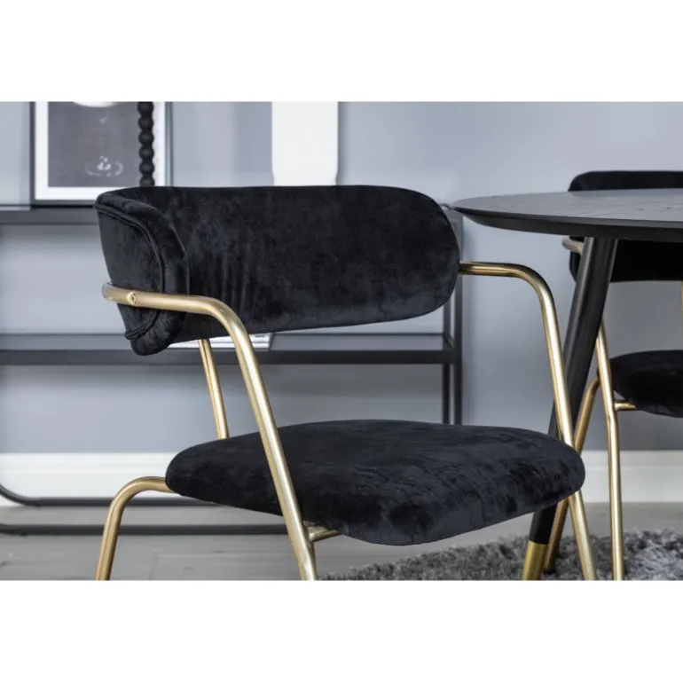 Vores stilfulde og siddevenlige spisestole Arrow kombineret med spisebordet Dipp passer perfekt ind i de fleste husholdninger. Et bord med masser af plads til middage og socialt samvær. Indret med guldkanter i hverdagen – det skal føles rart at komme hjem!