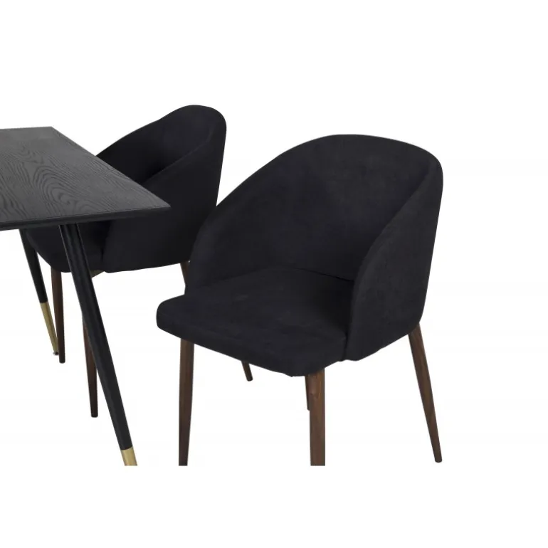 - Elegant design: Rundt spisebord i sort med stole fra Arch-serien i naturlige farver.