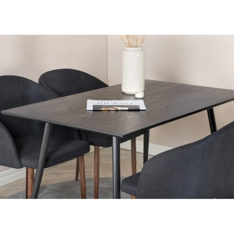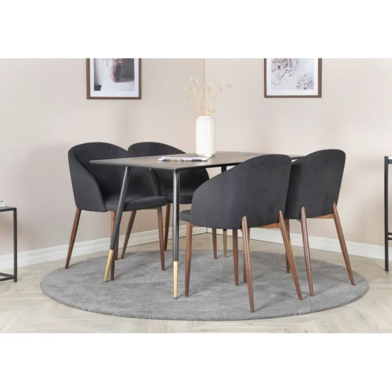 Dipp Rundt Spisebordssæt er et klassisk Spisebordssæt, der passer perfekt til de fleste husholdninger! Spisebordet fra Dipp-serien kombineret med stole fra Arch-serien er skabt til dem, der ønsker at skabe en hyggelig og moderne atmosfære i hjemmet. Dette sæt er fremstillet af kvalitetsmaterialer som bøjet træ, MDF, og stål, hvilket sikrer både holdbarhed og stil. Med en sort bordplade og stolene i naturlige farver, tilføjer dette sæt elegance til enhver spisestue.