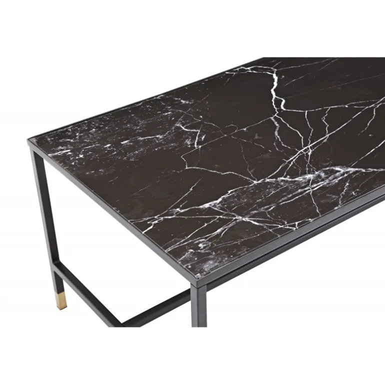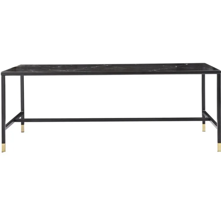 - Sort metalramme med messingbenafslutning: Kombinationen af materialer giver et moderne look.