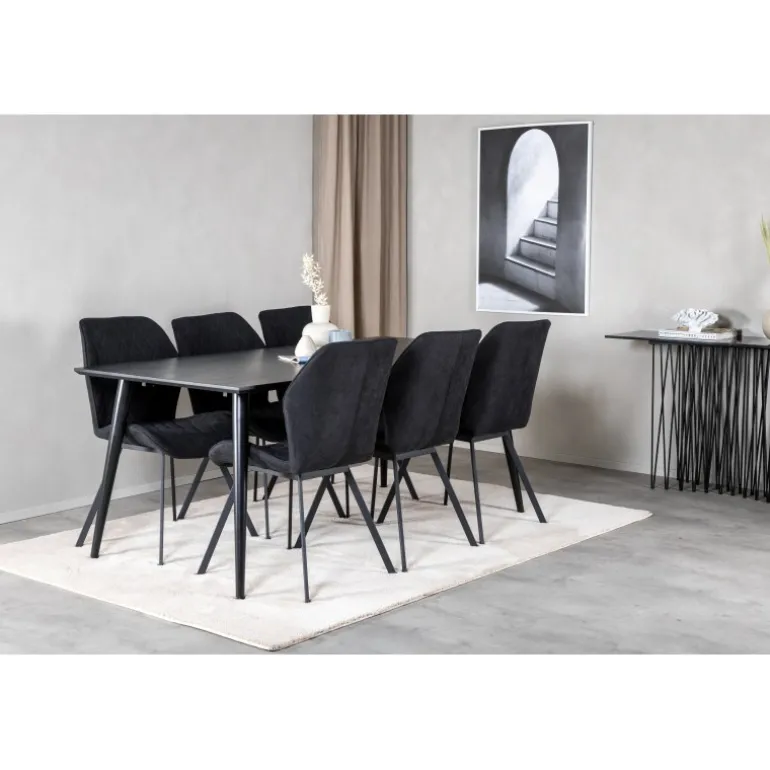 Vores moderne Dipp spisebord sammen med komfortable spisebordsstole i Gemma-serien. Her får du et Spisebordssæt, der udstråler luksus og elegance. “Dress up or down” dit Spisebordssæt med anden indretning rundt om, lige så velegnet til hverdagen som til fest!