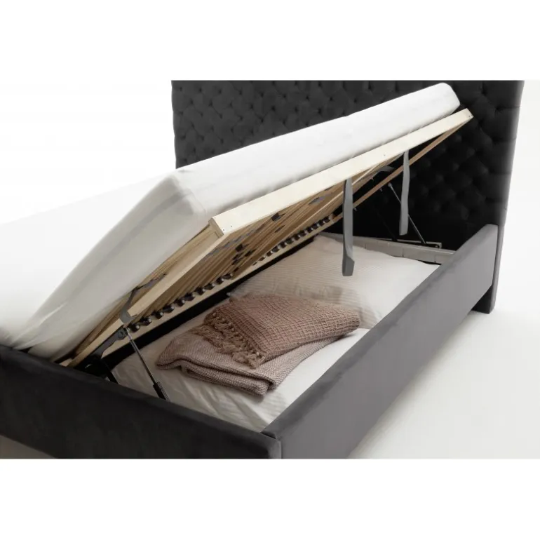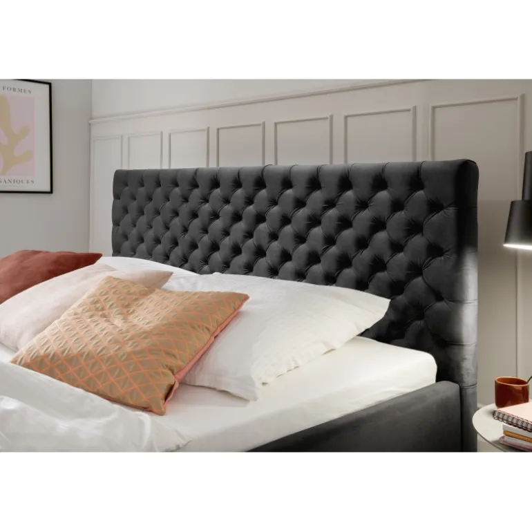 Bettkastenbett (sengeramme med opbevaring) – 160×200 cm med Chesterfield-polstring i Riviera 97 anthrazit.