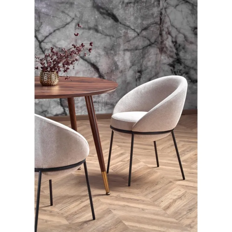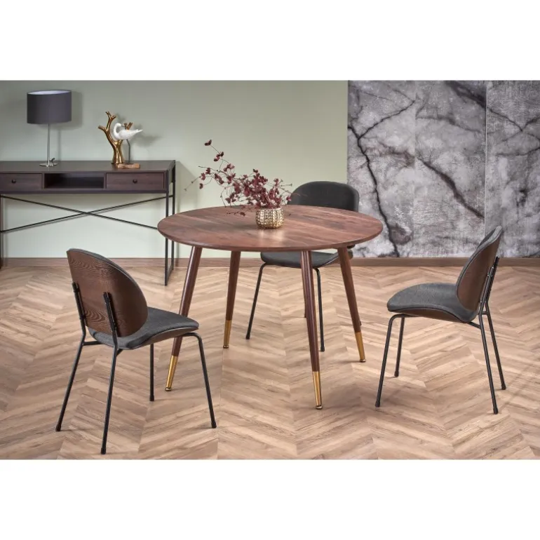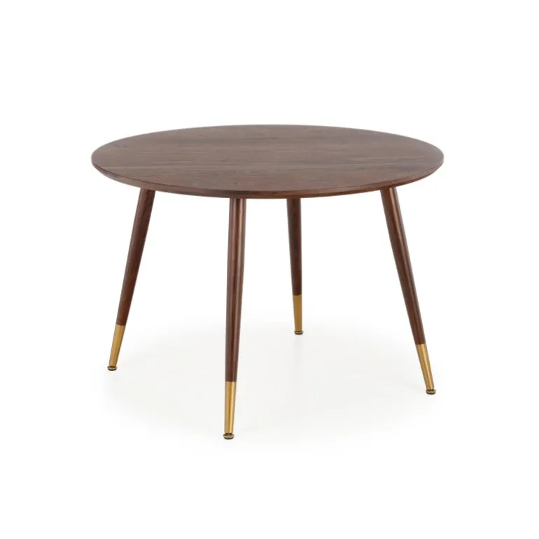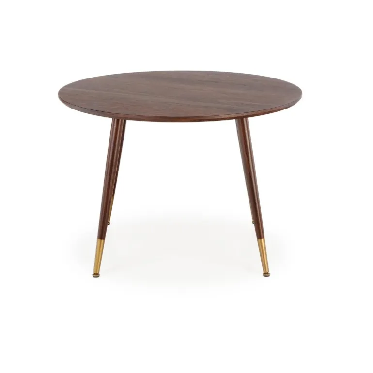 DOMENICO bordet i valnød/guld kombinerer elegant design med funktionalitet. Med dimensioner på fi110/76/72 cm passer det perfekt til både moderne og klassiske hjem. Bordet er lavet af lamineret MDF og malet stål, hvilket sikrer holdbarhed og stil. Toppen har en smuk valnøddefinish, mens benene er i en sofistikeret kombination af valnød og guld. Dette bord er ideelt til ethvert spise- eller opholdsrum og vil uden tvivl tilføje et strejf af luksus til dit hjem.