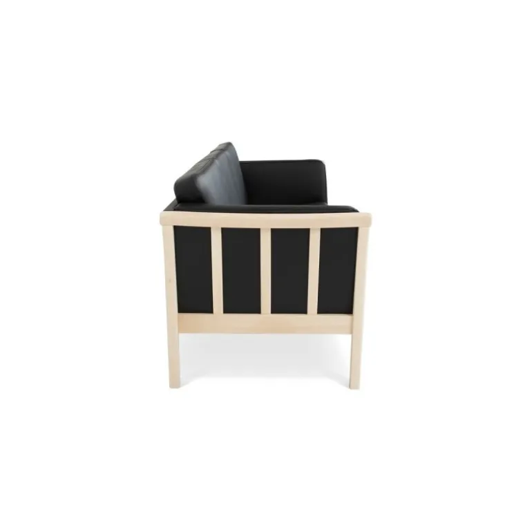Dragør 3+2 pers. sofasæt i tidløst kvalitetsdesign, udført med kraftigt sort læder betræk og stilrene ubehandlede tremmegavle i massivt bøgetræ. Et klassisk sofasæt, som udmærker sig med yderst behagelig siddekomfort og enkle, indbydende former.
