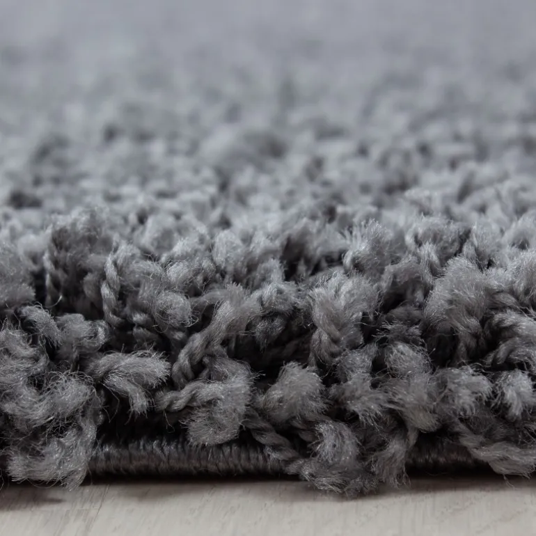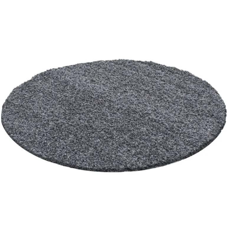 Dream Rund Shaggy tæppe Ensfarvet – Grå