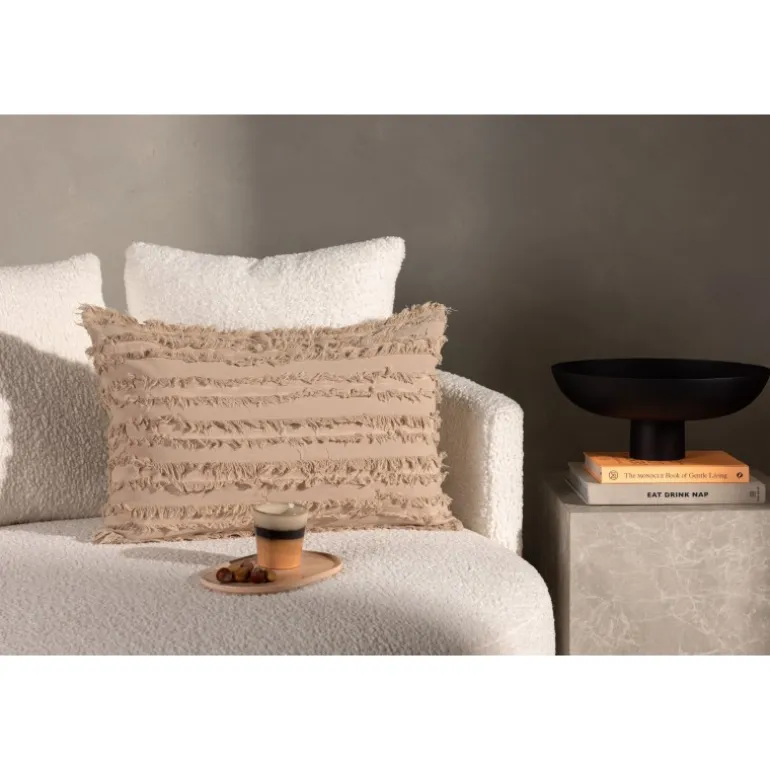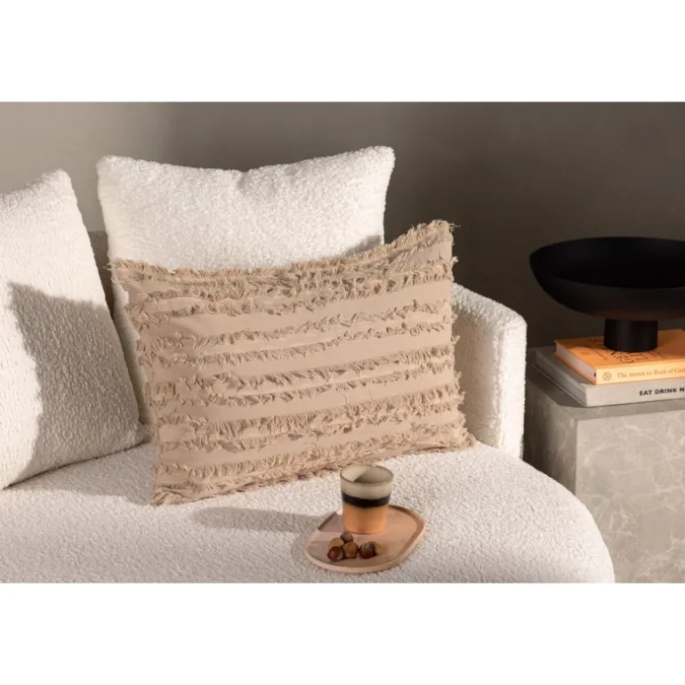 En pudebetræk der skiller sig ud og skaber et moderne blikfang! Dette pudebetræk tilhører Edith-serien og er lavet af holdbart bomuldsstof, der holder over tid. Betrækket har dekorative frynser, der skaber et pænt lineært mønster. Her i en varm beige nuance, der let passer til andre stilarter i hjemmet. Kombiner med andre farver og størrelser for at skabe et varieret og modebevidst blikfang til din indretning!