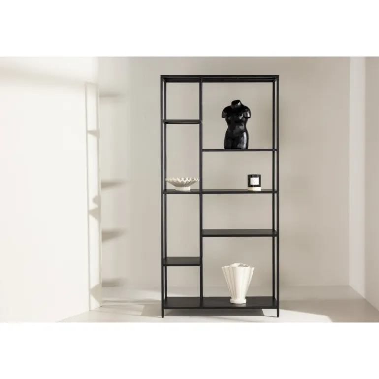 Dekorer din stue med de nyeste trends ved hjælp af en sort skandinavisk stilhylde – vi byder El Alto velkommen til Venture Home familien! Med sit gennemtænkte design og slanke strukturer, kombinerer El Alto perfekt klassisk finish og modernitet. Denne åbne hylde er skabt for alsidighed. Variér dit indhold på flere overflader med hylder i forskellige højder. Uanset om det er bøger, smukke vaser eller stemningsfulde lysestager, tilbyder El Alto et fleksibelt rum til din personlige kreativitet og indretningsstil. Hylden er lavet af sort pulverlakeret stål, hvilket komplementerer både traditionelle og moderne indretninger. Det er ikke bare et møbel – det er en statement-stykke. Skab din egen personlige oase med denne opbevaringshylde og indret dit hjems hjerte på en varm og hyggelig måde, med alle dine yndlingsgenstande samlet og organiseret på display!
