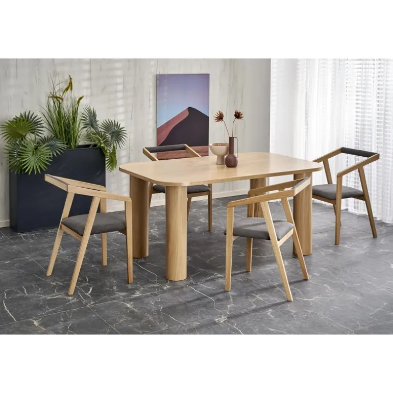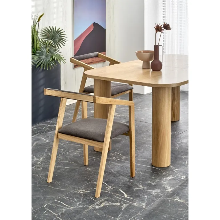 ELEFANTE REKTANGULÆR Spisebord med udtræk i naturlig eg er det perfekte valg til din spisestue. Med dimensionerne 160-240/100/77 cm kan dette bord nemt udvides for at imødekomme flere gæster. Fremstillet af MDF med en naturlig egefinér, kombinerer det både holdbarhed og elegance. Bordets naturlige egefarve tilføjer et tidløst og sofistikeret udseende til ethvert rum.