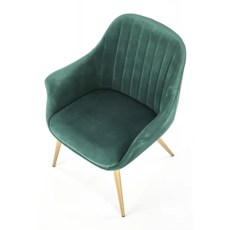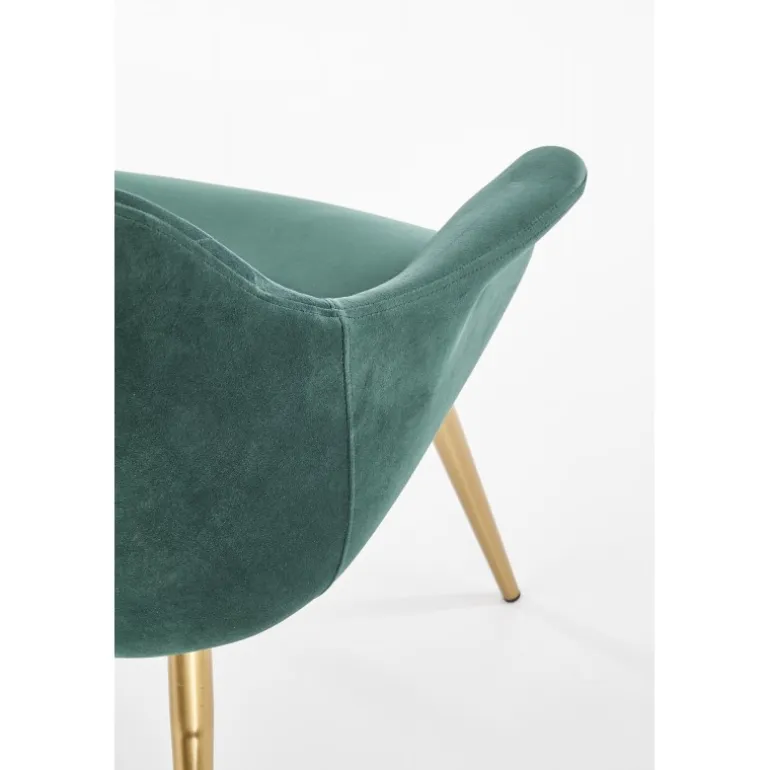 - Elegant design: Mørkegrøn polstring og gyldne ben for et luksuriøst look.