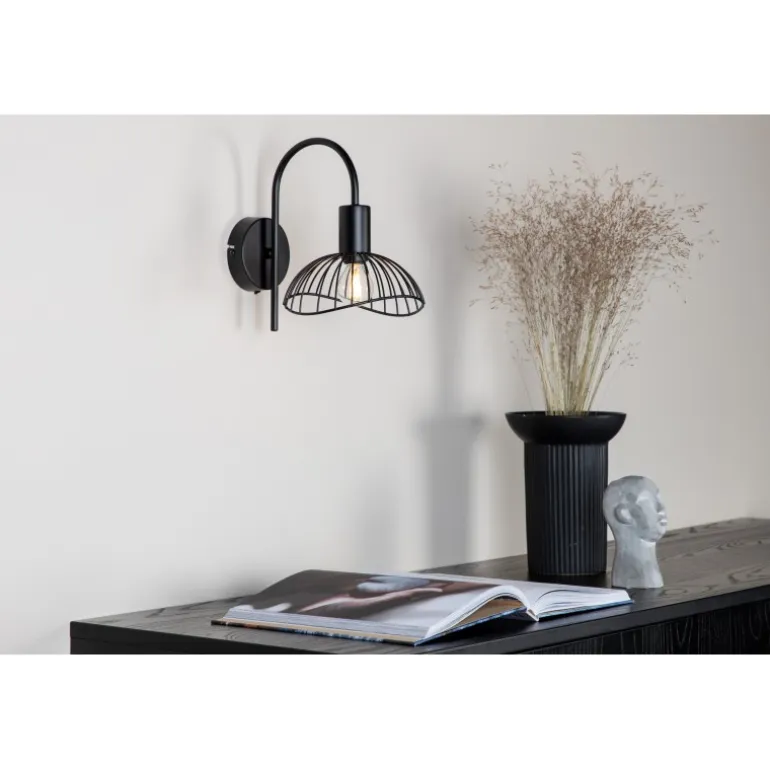 Denne væglampe fra Elsa-serien klatrer på trendlisterne! Lampen har et moderne design i form af en sort afrundet stålskærm og en stilfuld, flot beslag. De bløde former og den stilrene farve gør lampen til en smuk interiørdetalje, der holder over tid. Placér den over natbordet eller i læsehjørnet og nyd det herlige lys og øjenfaldende dekoration. Ved installation: En såkaldt fast installation er påkrævet, hvilket kun må udføres af en elektriker.