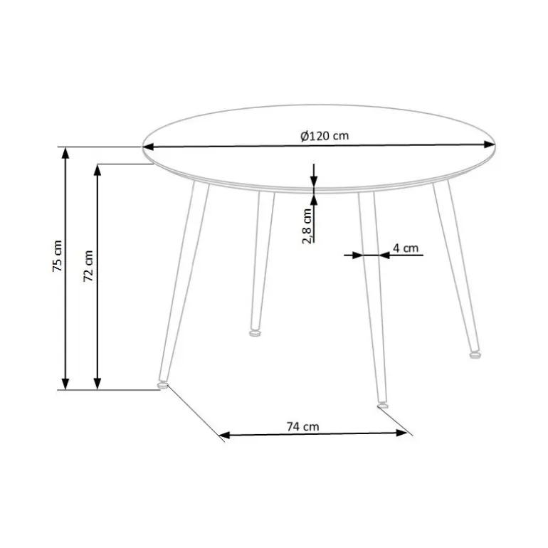 - Rund top (o120 cm): Perfekt til både små og store rum.