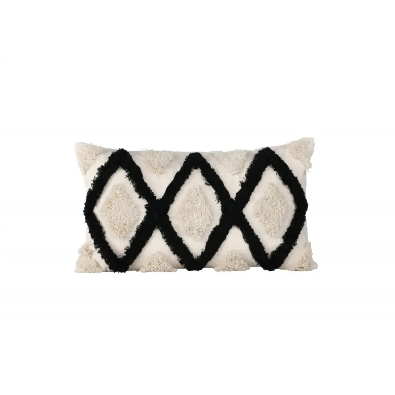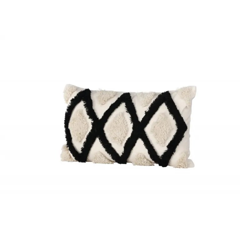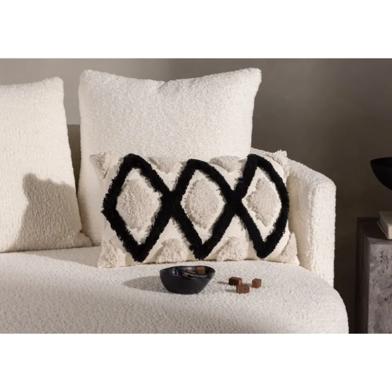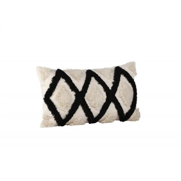 Emelie, vores populære pudebetræk der kombinerer komfort med moderne design! Dette aflange pudebetræk har en hvid basefarve og et abstrakt mønster i tuftet materiale i både hvid og sort farve. Fremstillet af en perfekt blanding af polyester og bomuld, der både er eftergivende og holdbar. Skab en flot blikfang i sofagruppen med et trend-sikkert pudebetræk, som nemt kan matches og kombineres med andre pudebetræk!