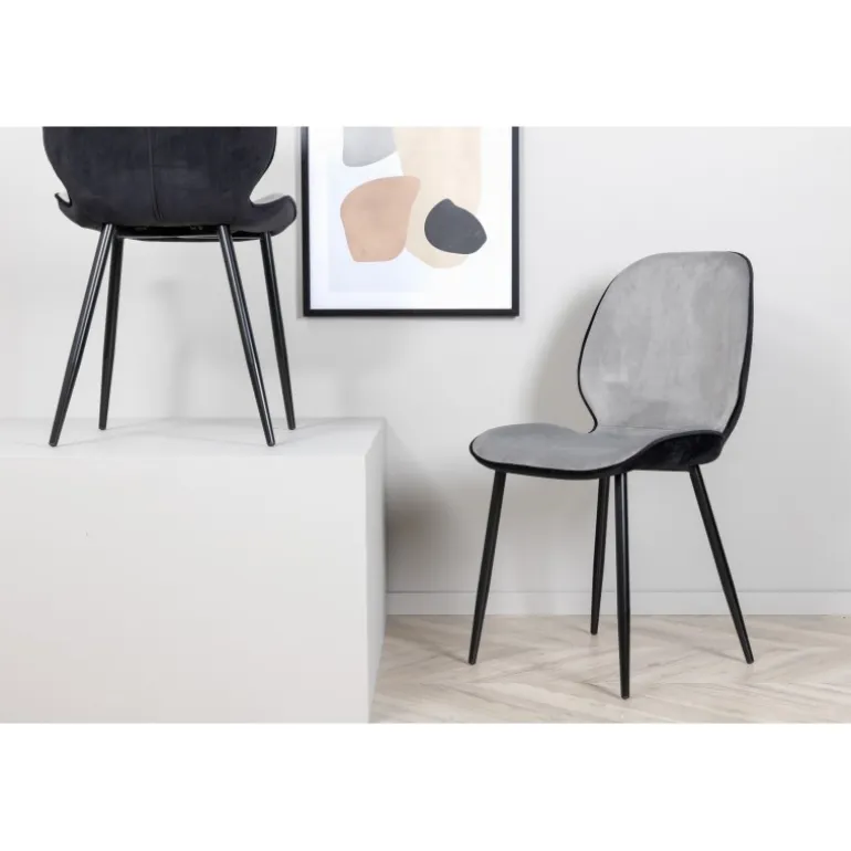 - Trendy kontrast mellem sort ryglæn og gråt sæde.