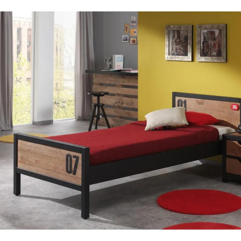 Enkeltseng 90 x 200 – Alex, natur/træ og metal