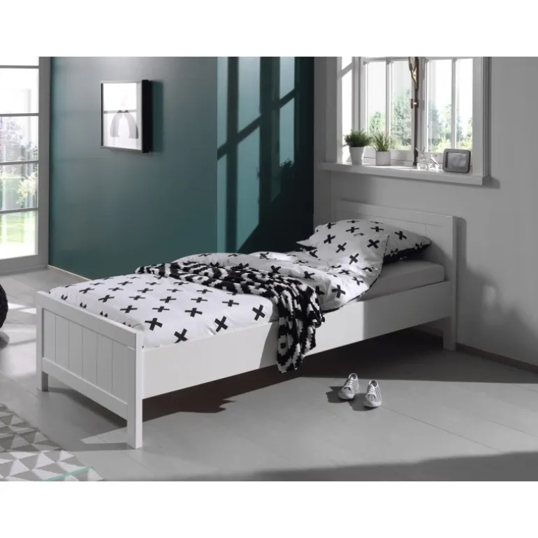 Enkeltseng 90×200 – Erik, hvid lakeret MDF og fyr