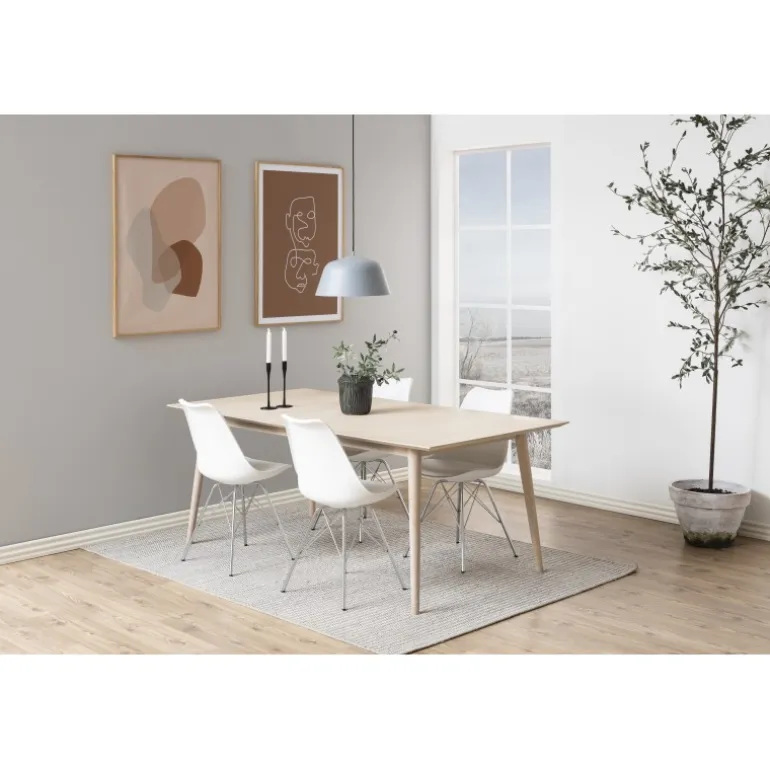 Eris spisebordsstol plastik hvid, hynde hvid PU, ben krom. Sælges i sæt á 4 stk. Prisen er pr. stol.