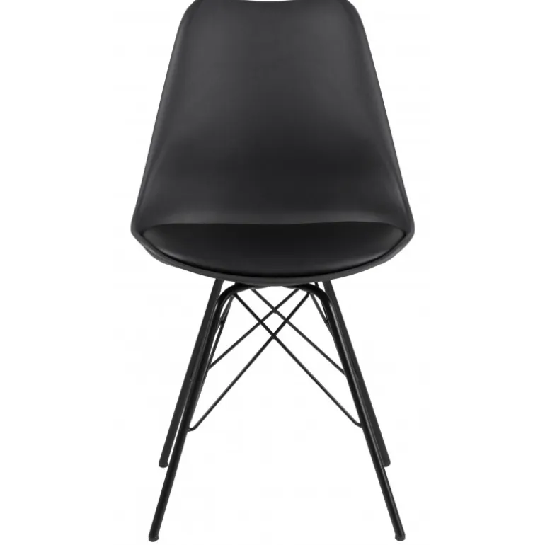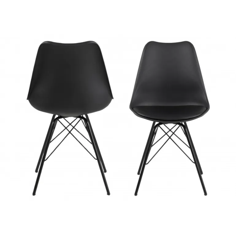 Eris spisebordsstol plastik sort, hynde sort PU, ben metal pulverlakeret, sort. Sælges i sæt á 2 stk. Prisen er pr. stol.