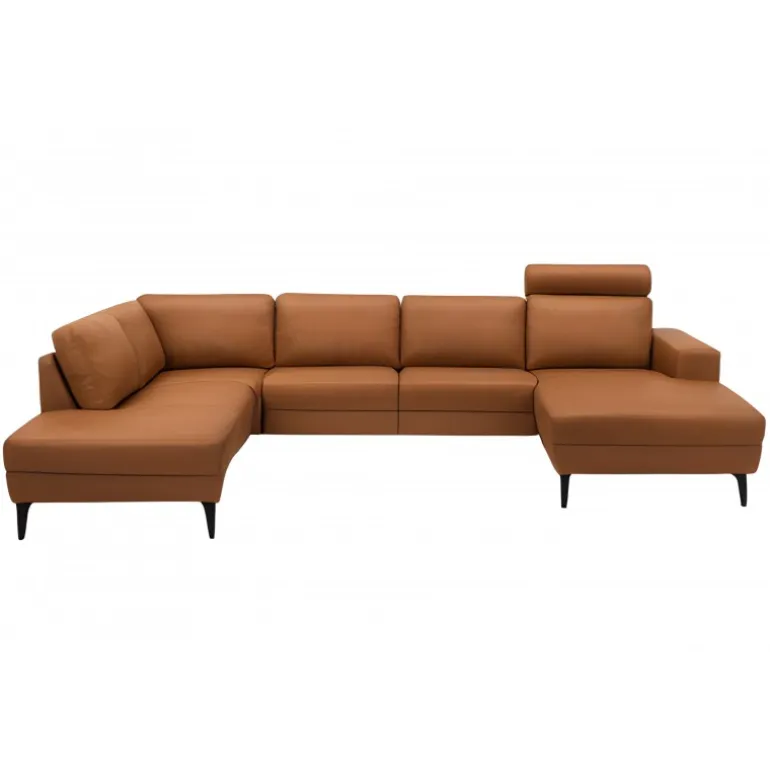 Esbjerg Læderhjørnesofa med chaiselong Cognac - Højrevendt