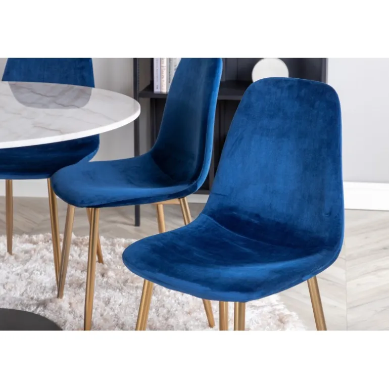 Estelle, moderne og stilrent spisebord – her sammen med spisestole i Polar-serien. Skab noget elegant og socialt med plads til god mad og hyggelige stunder! Dette sæt kombinerer et marmor spisebord med plywood og stål spisestole, hvilket giver et moderne og holdbart design. Perfekt til enhver spisestue, hvor stil og funktionalitet går hånd i hånd.