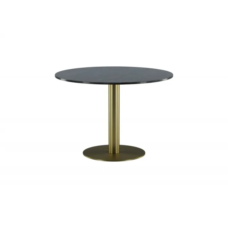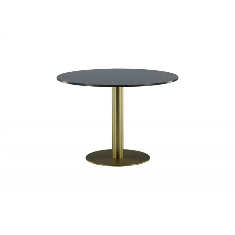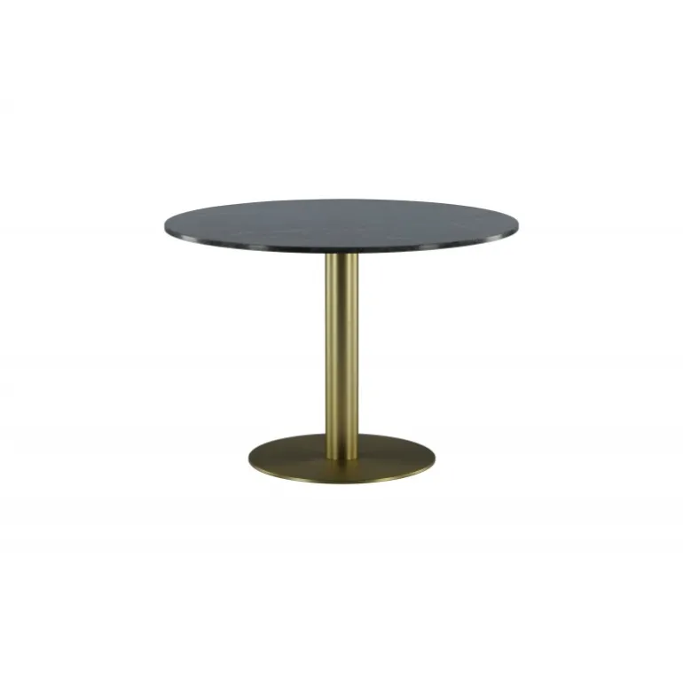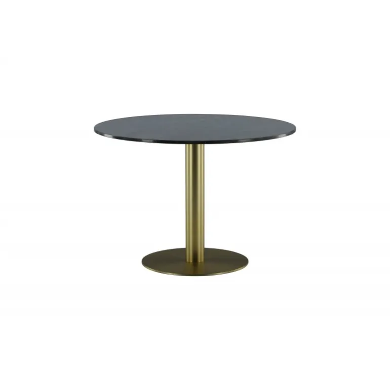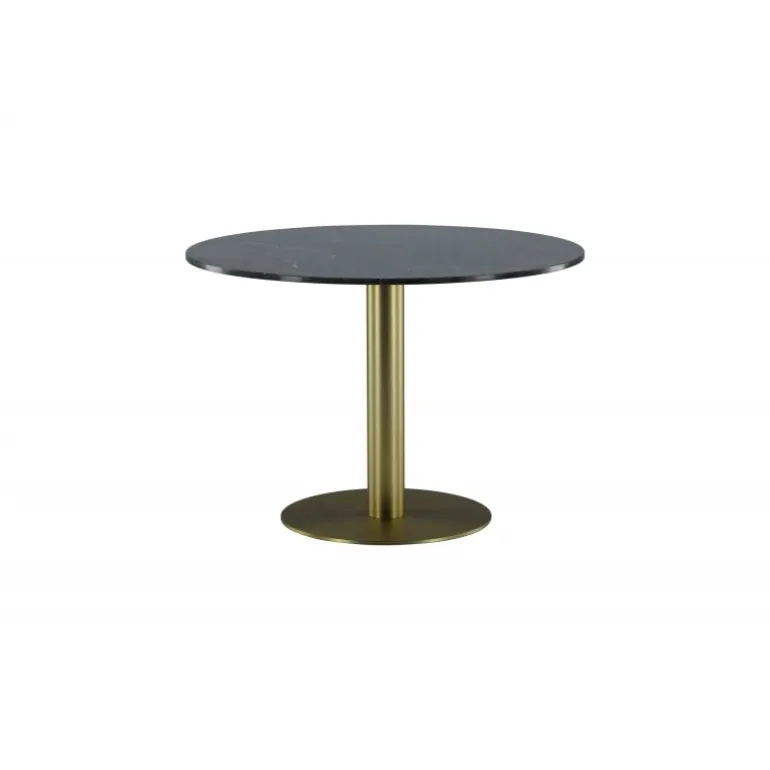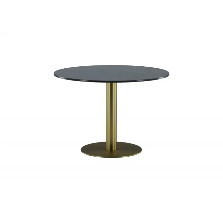 Estelle Rundt spisebord er et stilfuldt ikon til hjemmet og en behagelig midtpunkt for at samle familien! Estelle er et rundt spisebord i sort marmor med en dekorativ metalbase. Det elegante design gør spisebordet perfekt til både hverdag og fest. Hæv indretningsniveauet i dit hjem! Plejeråd: Marmor er et porøst materiale, der er følsomt over for spild og syrer, så sørg for altid at tørre alt spild op med det samme. Ny marmor og terrazzo bør altid behandles et par gange i begyndelsen. Pladen bør behandles med “Protect Marble & Stone” fra Leatchermaster, alternativt kan der påføres et tyndt lag paraffinolie/hvid olie.