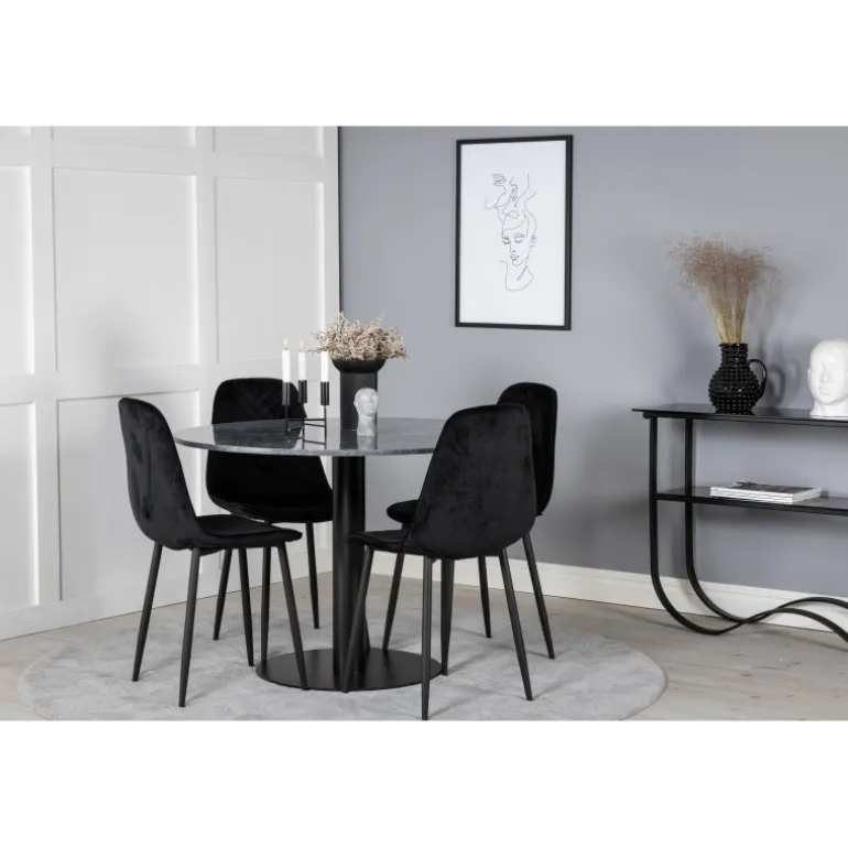 At købe en forudkomponeret Spisebordssæt er både trendsikkert og praktisk! Her kombinerer vi vores spisebord Estelle med vores komfortable spisebordsstole Polar. Lad hjemmets hjerte blive præget af din nye iøjnefaldende Spisebordssæt.