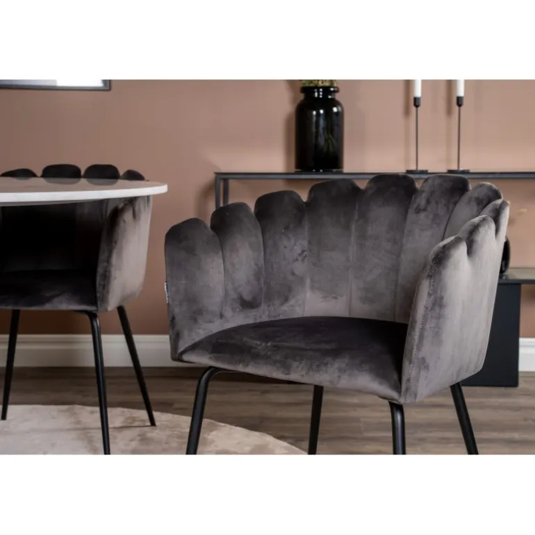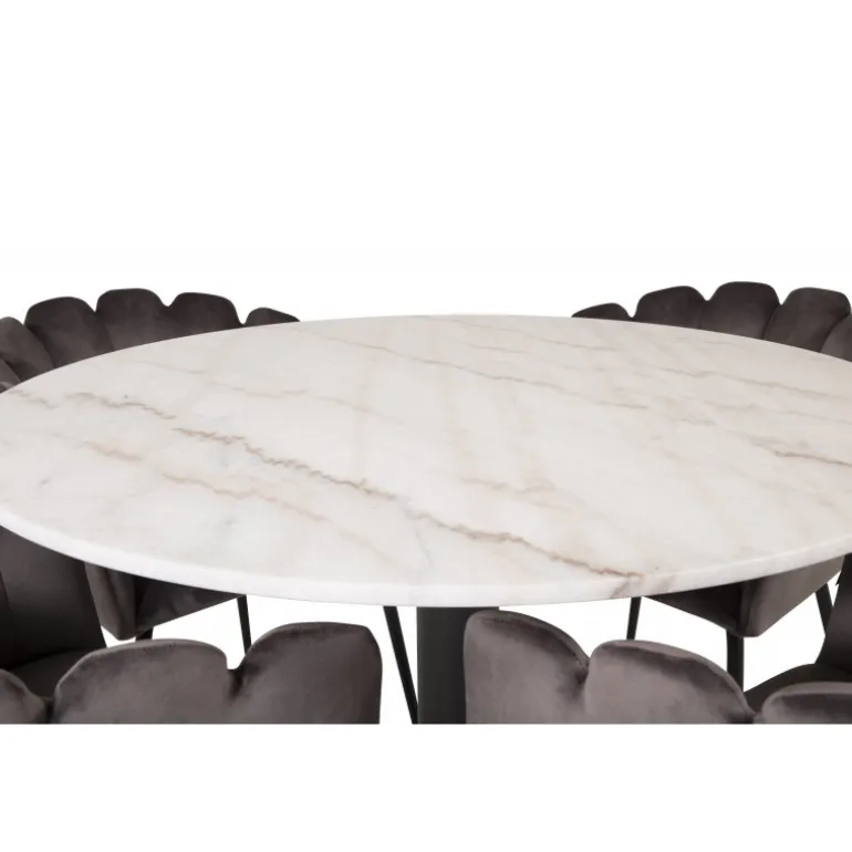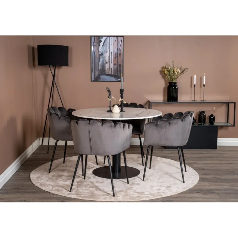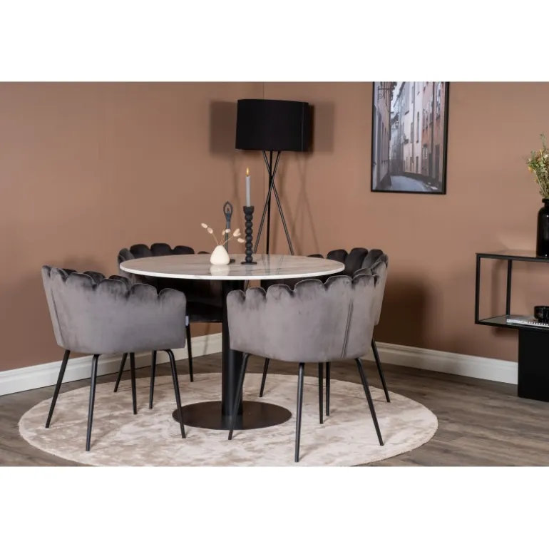 Estelle Rundt Spisebordssæt kombinerer en stilfuld marmorbord fra Estelle-serien med komfortable stole fra Limhamn-serien. Skab et hyggeligt og socialt miljø med plads til god mad og samvær. Med sit elegante design passer dette sæt perfekt ind i ethvert moderne hjem.
