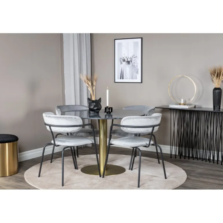 - Slankt og moderne design: Estelle spisebordet og Arrow spisestolene giver et elegant look til dit hjem.
