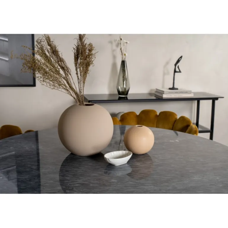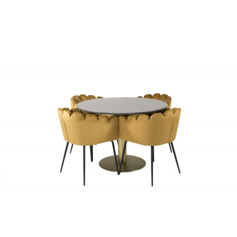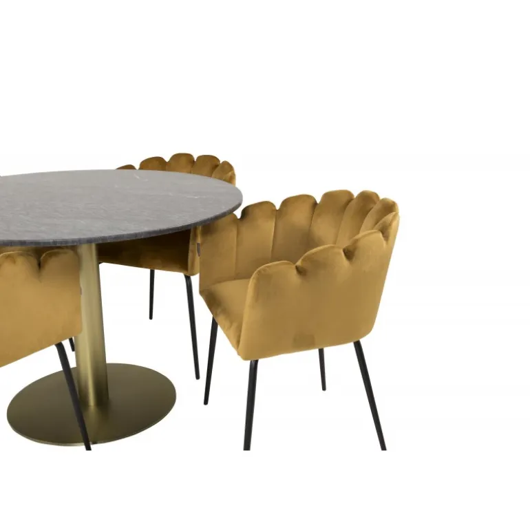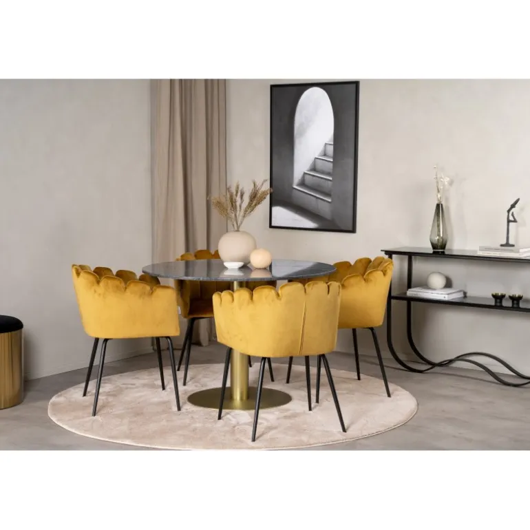 Sæt farver på hjemmet! Stilfulde marmorborde i serien Estelle sammen med vores smukke gyldne stole Limhamn. Her sidder du gerne længe og nyder godt selskab med venner!