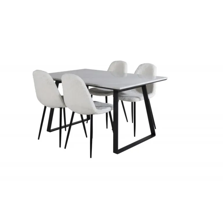 Spisebordet Estelle i et slankt design, sammen med spisestolene Polar – den perfekte kombination for dem, der ønsker en trendy spisestue. Den høje siddekomfort i stolene inviterer til lange og vidunderlige øjeblikke med socialt samvær! Dette elegante Spisebordssæt forbedrer ethvert interiør med dets moderne stil og kvalitetsmaterialer som marmor og stål.