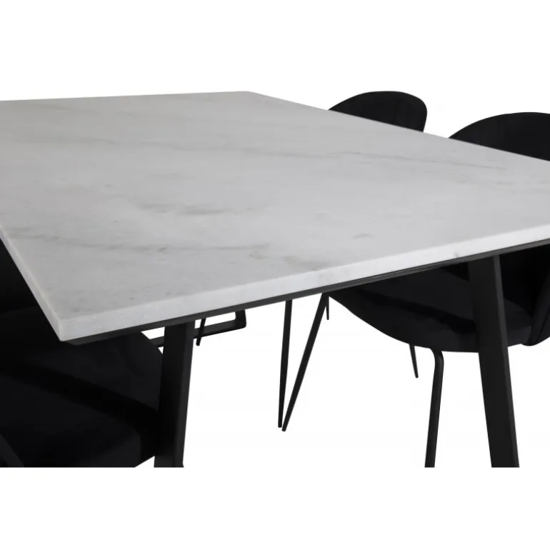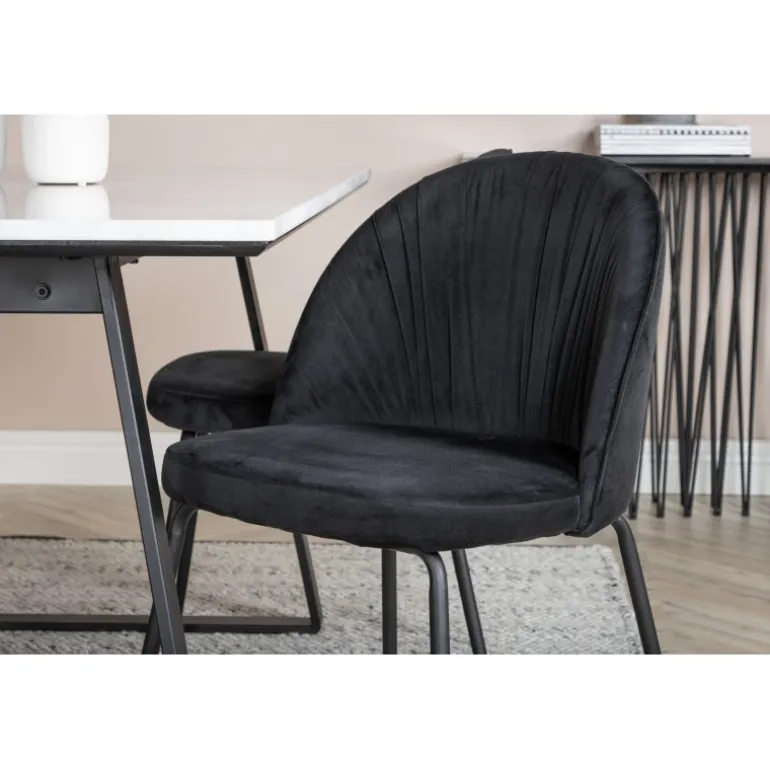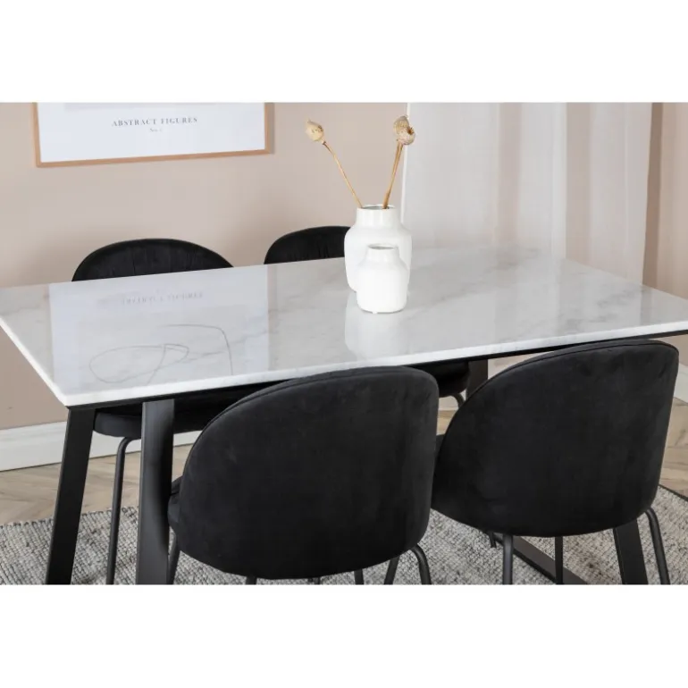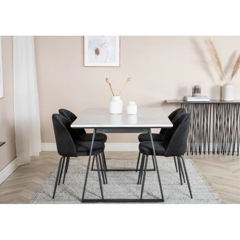 Spisebord Estelle i et slankt design, sammen med spisestole Wrinkles – den perfekte kombination for dem, der ønsker en trendy Spisebordssæt. Stolens høje siddekomfort inviterer til lange og vidunderlige stunder for socialt samvær!