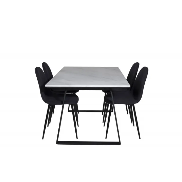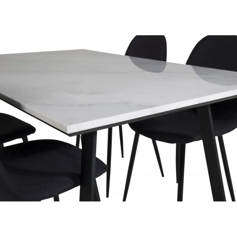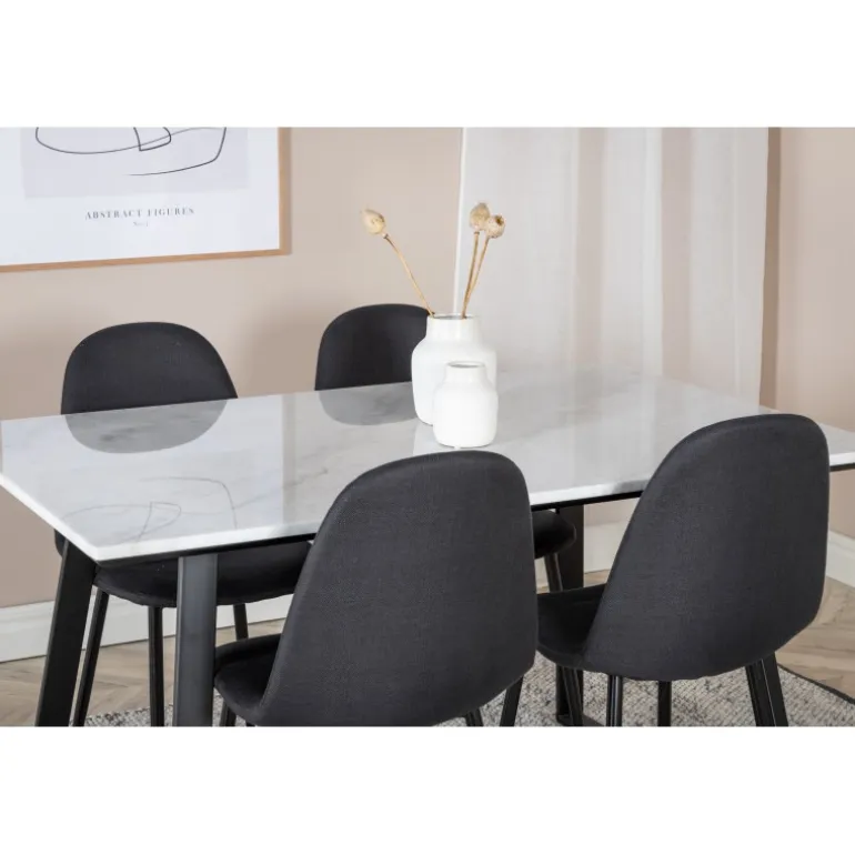 Spisebord Estelle i et slankt design sammen med Polar spisestole – den perfekte kombination for dem, der ønsker en trendy Spisebordssæt. Den høje siddekomfort af stolene inviterer til lange og vidunderlige øjeblikke med socialt samvær!